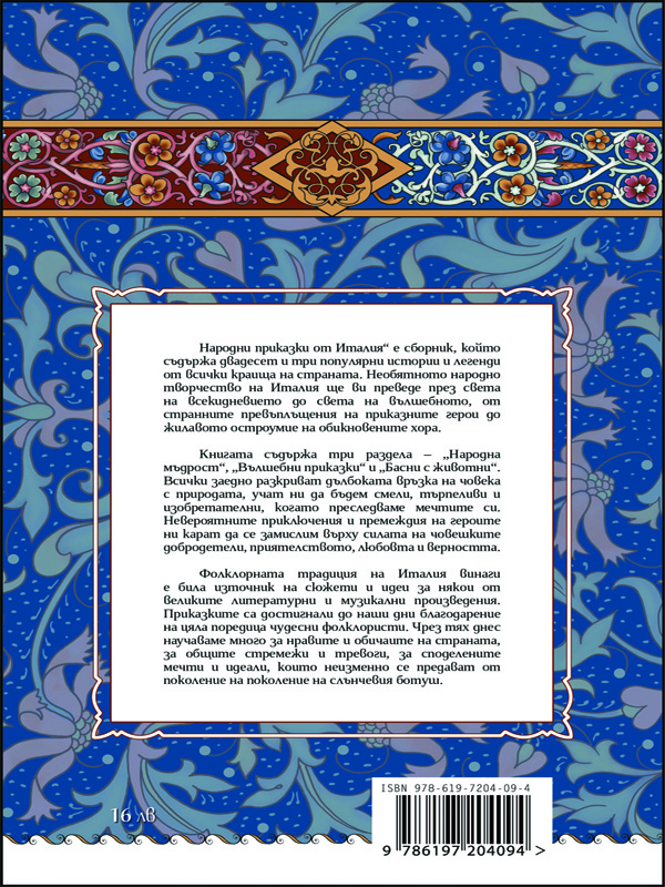 The book contains three sections – Popular Wisdom, Magical Tales, Animal Fables. All three together reveal the deep bond between man and nature, they teach us to be brave, patient and inventive in the pursuit of our dreams. The incredible adventures and plights of the characters will make you think harder on the power of human virtue, friendship, love and loyalty. Many of the stories exist in several versions in the different parts of the country. ‘Via Lettera’ tried to present the most popular and exciting Italian folk tales to the Bulgarian young readers. The texts are suitable for children in the age group of 8 to 14.